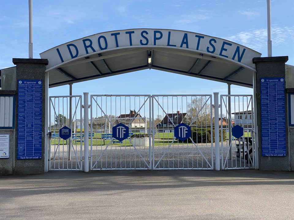 • Namnskylt vid entrén på Tomelilla IP!